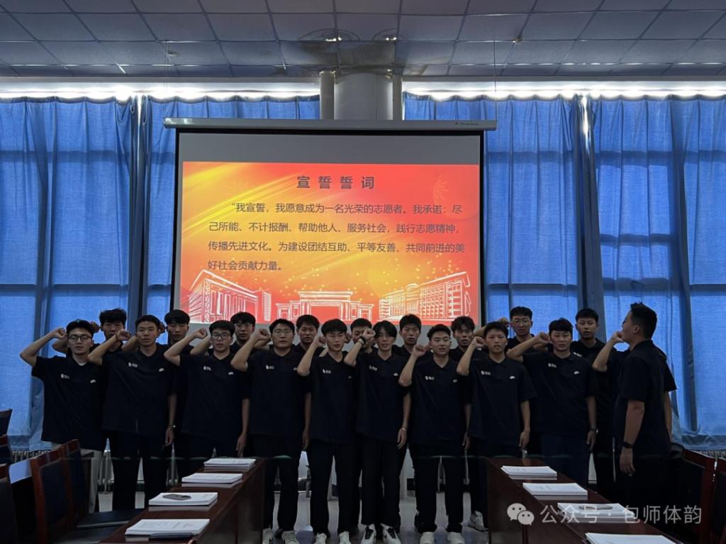 随后,在22社体张宣多的带领下,20名志愿者进行庄严宣誓,誓言铿锵有力,彰显了对活动的重视与责任担当。