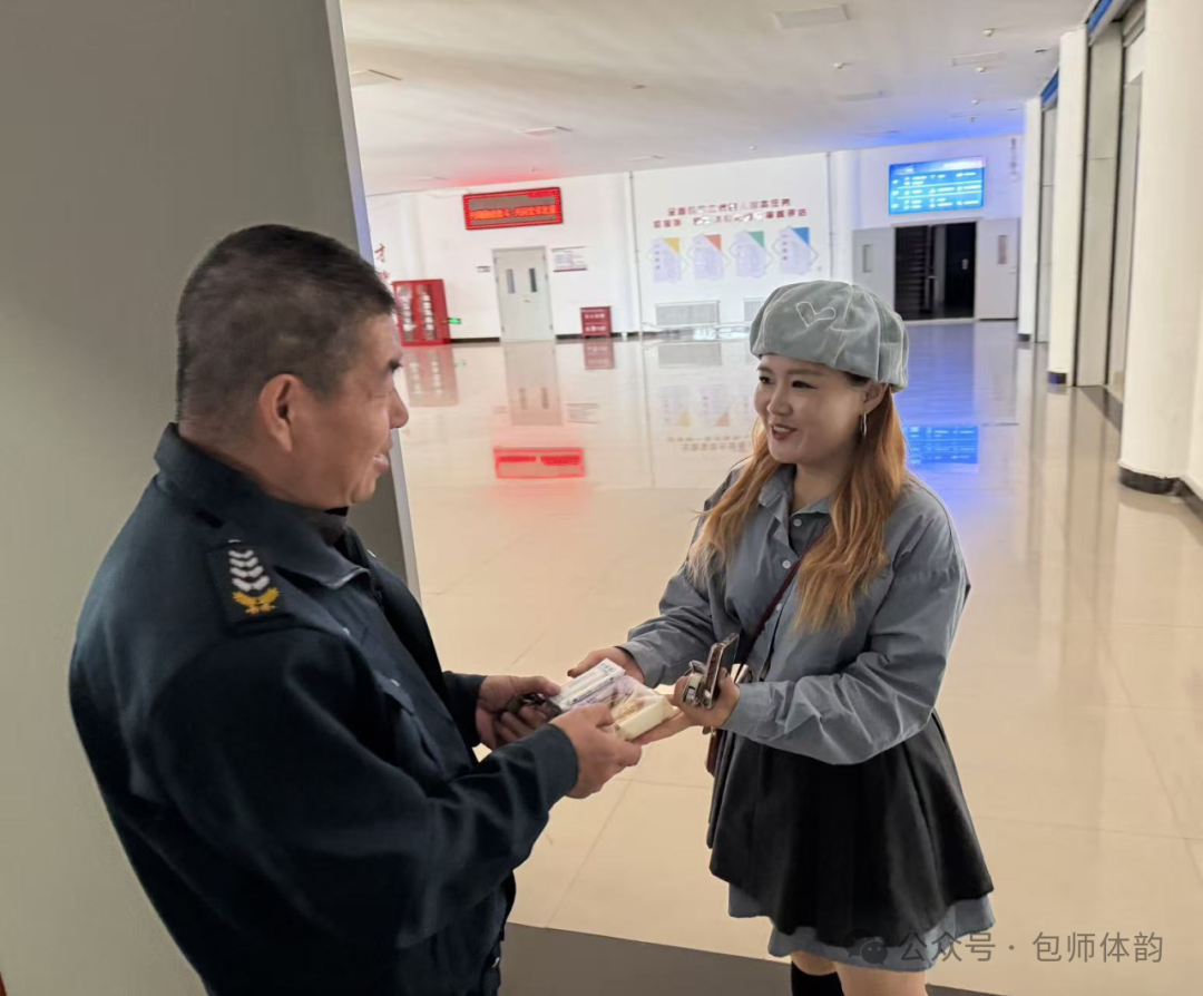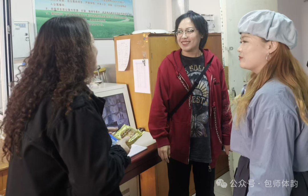 同时,老师们也向节日期间依然坚守在工作一线的宿管阿姨和体育馆门卫表达了诚挚的感谢和节日的问候,为他们送上了月饼,感谢他们的辛勤付出,保障了校园的安全与有序。