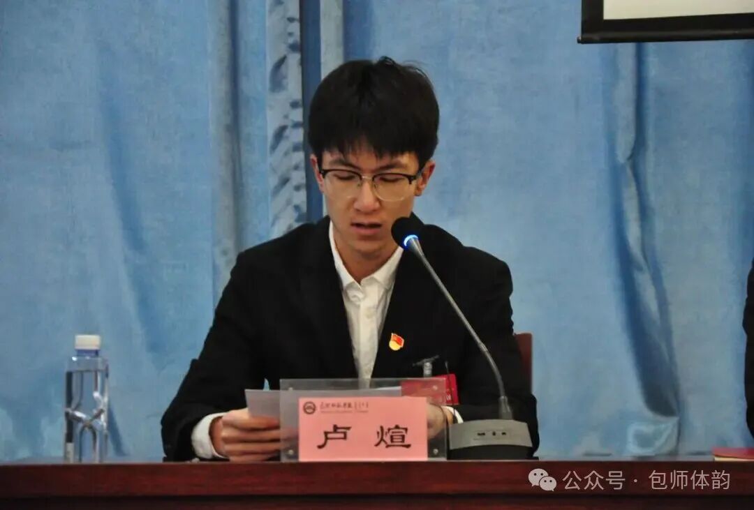 根据大会议程,大会提案工作组张东海同学宣读《大会提案审查报告》。报告中提到体育学院第三次学代会征集12条有效提案,聚焦四大领域诉求,学生会将推动搭建沟通桥梁、提案落地。