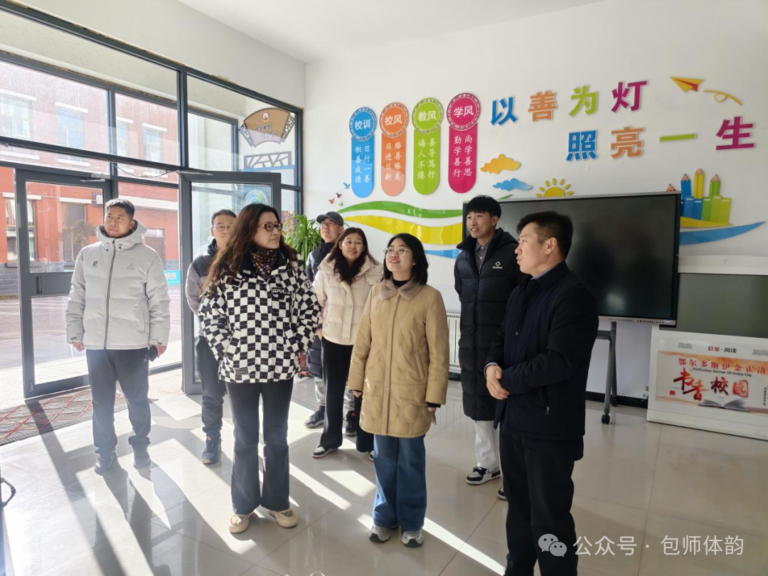 2025年11月28日,包头师范学院团委书记丁坤、体育学院党总支书记王骞、体育教育系主任钟远、社会体育指导与管理系主任谢权、学工办负责人宋蕾以及实习指导教师韩月清、刘哲一行七人,前往鄂尔多斯伊金霍洛旗,探望慰问体育学院2022级参与姚基金支教的同学。