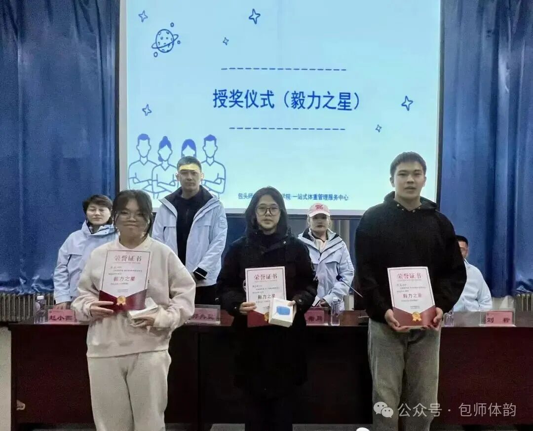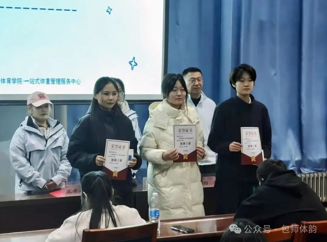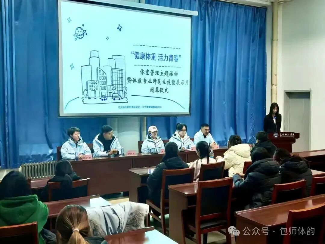 12月4日,包头师范学院体育学院“一站式体重管理服务中心”主办的“健康体重 活力青春”体重管理主题活动暨体教专业师范生技能展示月,在热烈的掌声与温情交织的氛围中圆满闭幕。闭幕式于体育馆五楼会议室举行,为这一持续一个多月的健康之旅画上充满活力的句点。